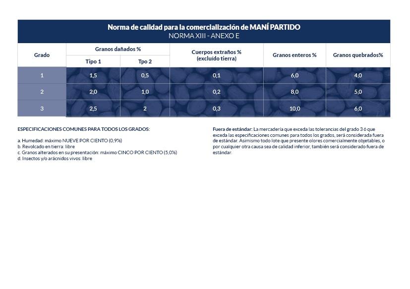 Norma XIII Anexo E de calidad para la comercialización de Maní Partido