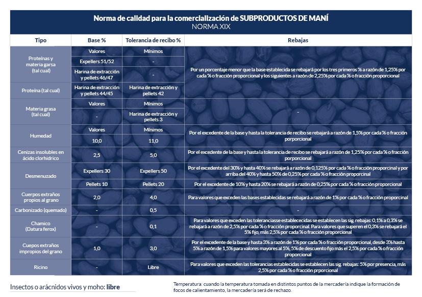 Norma XIX de calidad para la comercialización de Subproductos de Maní