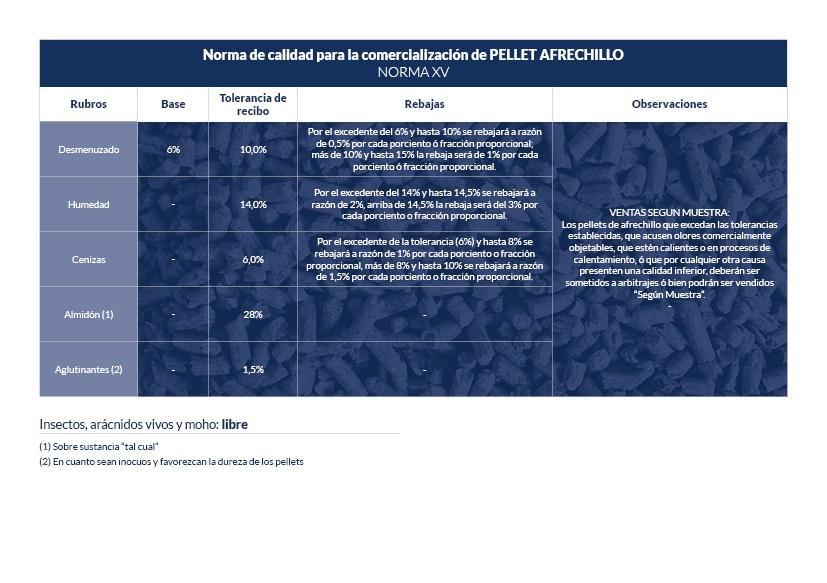 Norma XV de calidad para la comercialización de Pellets de Afrechillo