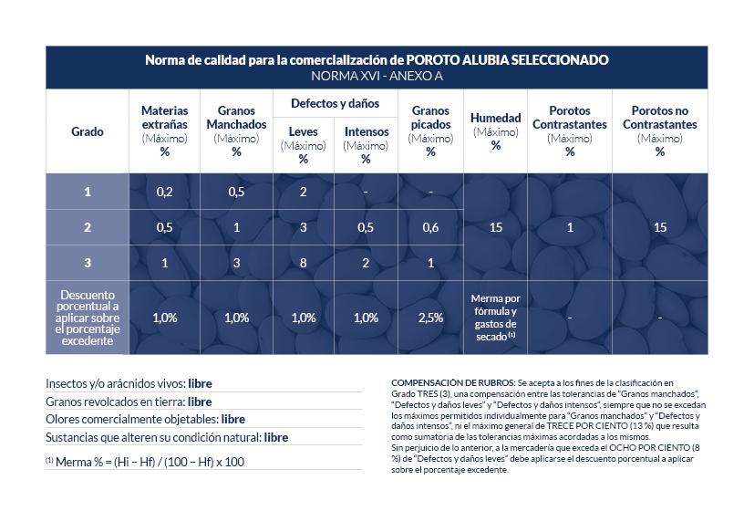 Norma XVI Anexo A de calidad para la comercialización de Porotos Alubia Seleccionados