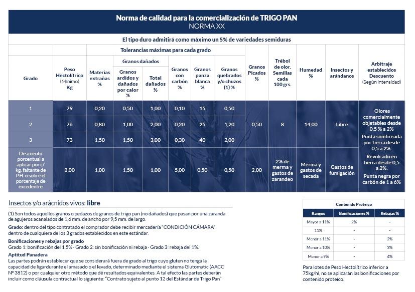 Norma XX de calidad para la comercialización de Trigo Pan